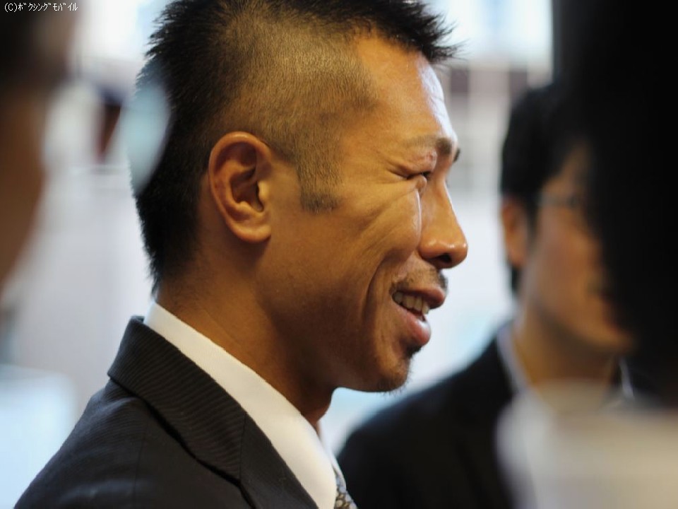 気になる怪我(※今年7月の試合で右目上を負傷)の具合は、ほぼ完治しているとのこと。「バッティングをされているようではまだまだ。今回は下から入り込まれても大丈夫なように対策練習をしている。」とさらなる進化を約束した。WBC世界同級王者で10月27日に防衛戦を行う粟生隆寛(帝拳)との対決に話が及ぶと「いずれはやりたいが、今は大晦日の試合に集中している。」と迷わず答えた。