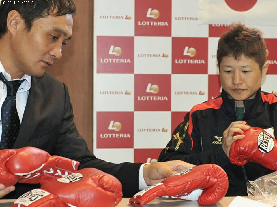 グローブチェックも無事に済み、会見ではまずT&Hジム竹原会長が大崎市に大会実現の感謝を述べ、千葉功大会実行委員長は「震災から立ち上がる東北の姿を大崎市から発信したい」と大会の成功を願った。