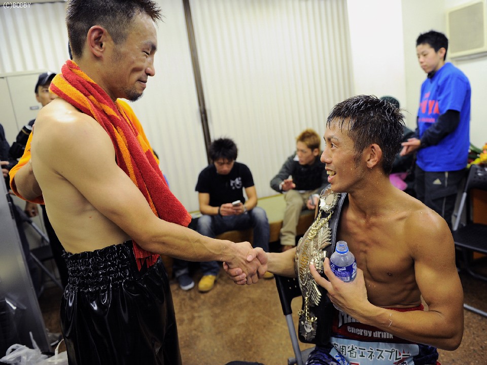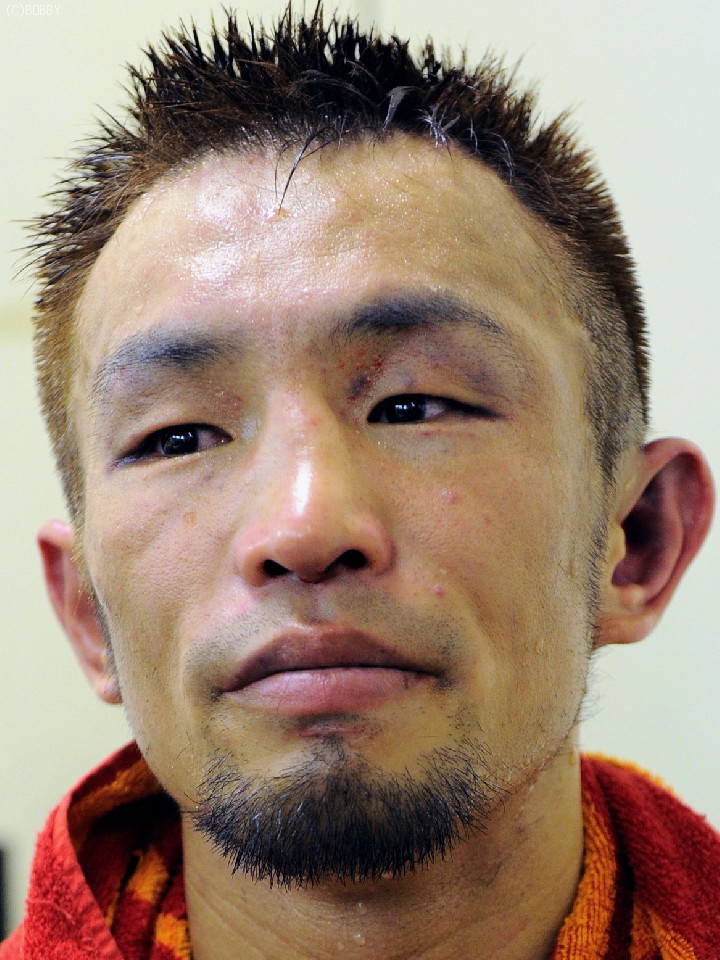 王者・粉川の印象を尋ねられ「想像していた通りスピードがありました。予想以上に拳が堅かったのには驚いた。タイトルマッチを戦うことができ、悔いは無いです!!」と山口はスッキリした表情を浮かべた。