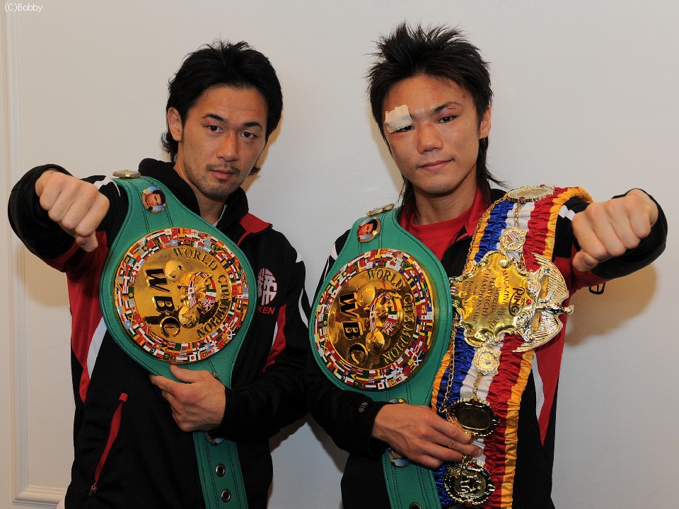 3日に開催されたダブル世界戦の共同一夜明け会見が、仙台市内にあるウェスティンホテルで行われた。会見会場に姿を現したWBC世界バンタム級王者・山中慎介と同世界フライ級王者・五十嵐俊幸は少々お疲れ気味ではあったが、そろって笑顔を見せた。