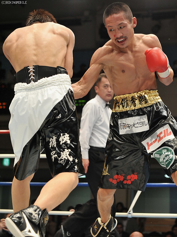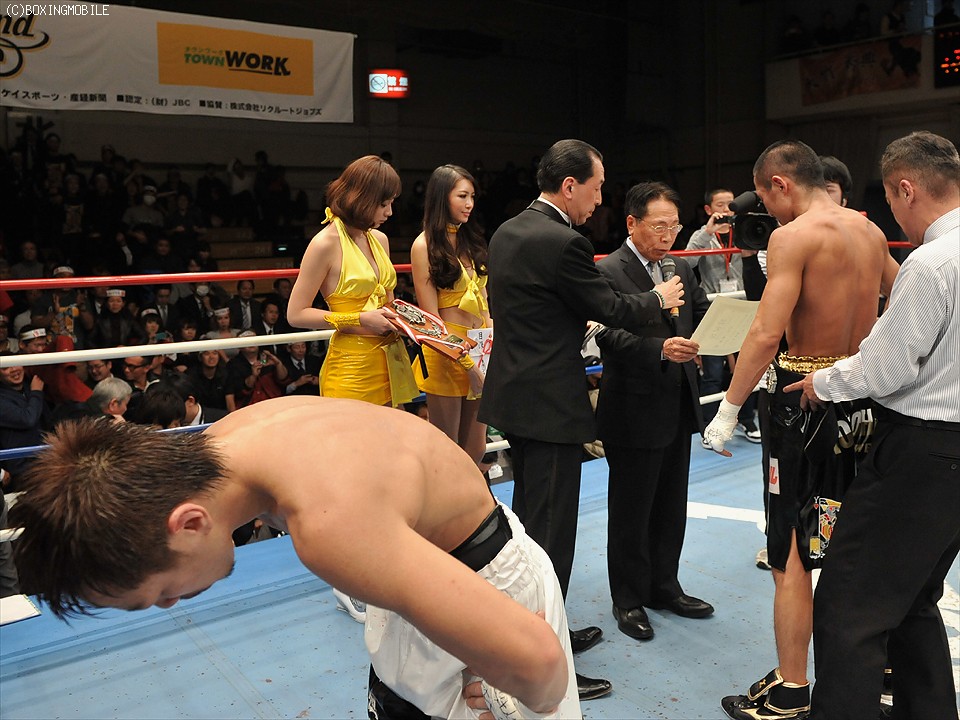 判定でまで試合が長引いたことに大竹は「初回に右クロスをもらったが焦りはなかった。ジャブに右クロスを被される怖さはあったが…。3ラウンドが終わったとき、今日も最後まで行くんだろうなと(笑)。最初から判定は覚悟していました」と肩から下げたベルトを見つめ安堵の表情を浮かべた。