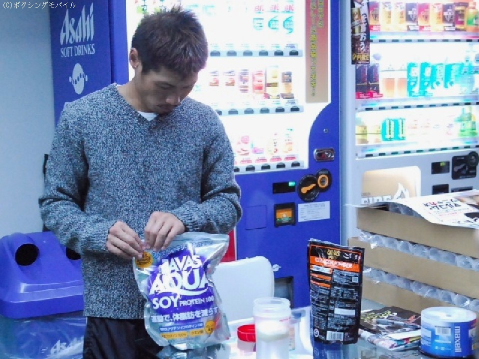 11月5日、囲み会見の席で長谷川穂積(真正)は「新しい試みはいつも考えてやっている、それがトップアスリート」と話した。未知の階級、スーパーバンタム級のリングまで10日に迫った12日、長谷川本人が契約する、株式会社 明治 (プロテイン、サプリメント等、栄養サポート)の長谷川担当の村野あずささん(管理栄養士)が本人の様子をチェックしに真正ジムに現れた。