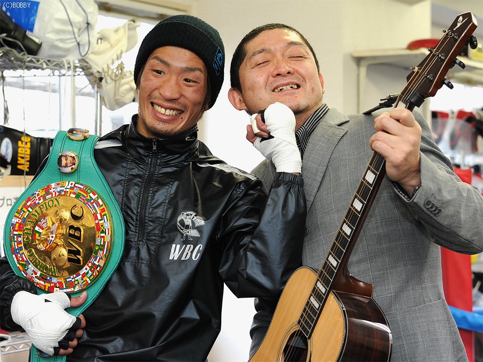 松本氏は会見で佐藤への応援歌として、ネバーギブアップを意味するオリジナル曲"NG"を熱唱しエールを送った。