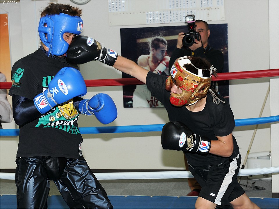 パートナーの前川は世界王者にも臆することなくワンツーフック・左ボディと回転の早い連打で攻め込むが、佐藤も巧みなブロッキングから得意の"右アッパー"で顔面を跳ね上げ切れの良さをアピールした。スパー後に佐藤は「龍斗はまだ16歳ですが、隙もないしレベルも高い。今日は1ラウンドに良いカウンターをもらってしまった(笑)。あと1年したら勝てないですよ!!」と新鋭をベタ褒めした。