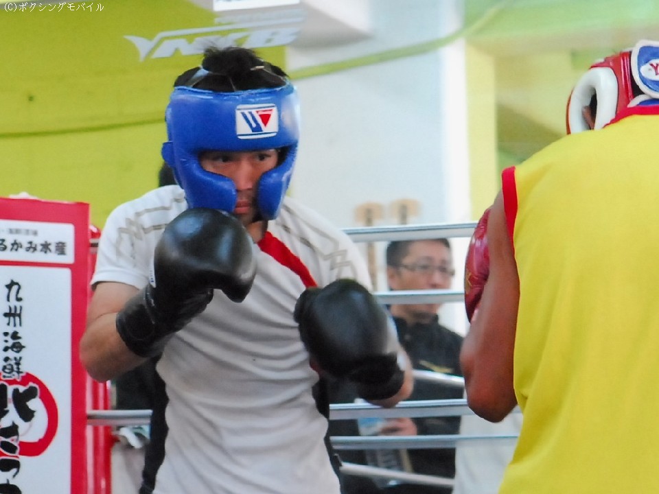 公開練習はサウナルームでの入念な準備運動から、2Rのマスボクシングで公開練習は終了。