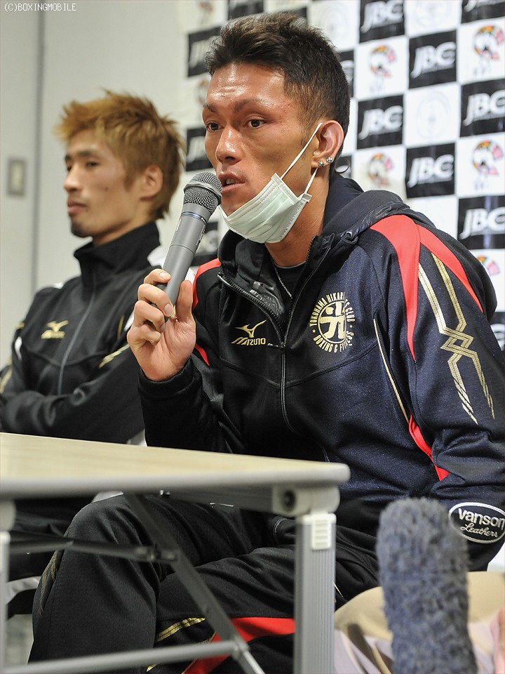 会見の席で佐藤は「特別な体力強化はしてないです。今回、減量法を変えました。直前まで(体重を)落とさず一気に落とします。バナナと練乳の組み合わせで、1時間で300g落とせた」と明日行われる前日計量を前に、調整法を明かすと「世界戦でもいつも通りに試合をしてきたが、今回は相手が赤穂選手ということで、少し気合いが入ってます」と日本人対決を楽しみにしている様子で「スパーで調子が良くなってきている。」と明後日の一騎打ちに準備万端と目を輝かせた。