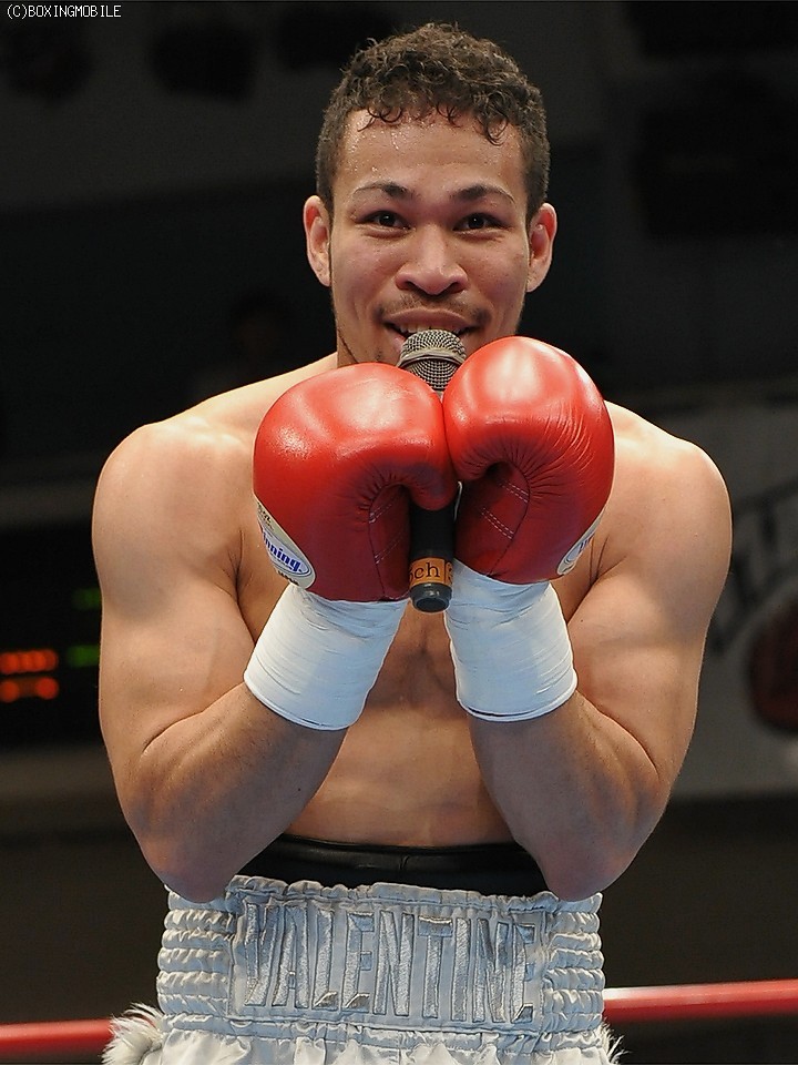 本能の戦いが目覚める!!細川バレンタイン(宮田)は165cmとスーパーライト級としては小柄であるが、筋骨隆々の身体とスピード感溢れるボクシングスタイルは"野獣"の如き荒々しさである。