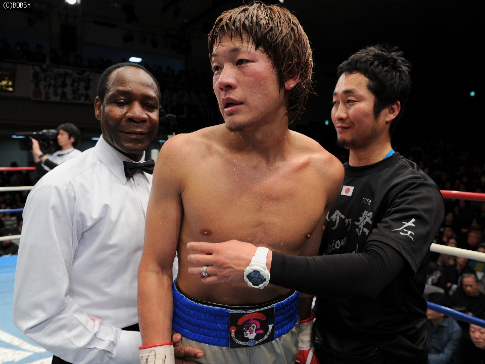 一昨年の全日本新人王獲得、昨年10月には日本4階級制覇王者・湯場忠志(都城レオS)をキャンバスに沈め、王座奪取の快挙を果たした佐々木だが防衛はならず。「初防衛のプレッシャーはなかったが、(胡は)圧力があり、パンチもあった。僕が狙いたかったボディも相手に打たれてしまった。(ダウンした時も)ガードが甘く、全然ダメでした」と完敗を認めた。渡辺均会長も「湯場戦より身体が起きていた。もっと低く入りたかった」と悔しさを滲ませたが、それでも「良い試合だった」と、ここまで快進撃を続けた佐々木を労った。