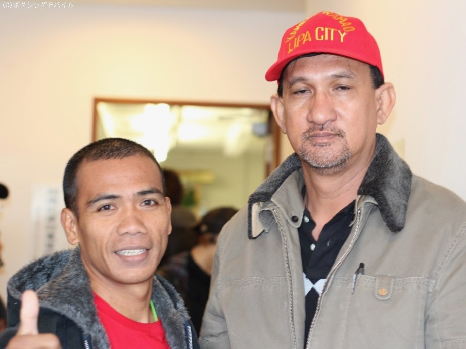 一方の対戦相手エスピノ選手は「李選手の試合は対下田(帝拳)戦など7,8試合見て研究してきた」と李対策に自信を見せると「コンディションつくりもうまくいった」と静かに話し、トレーナーのジュン・ガンデザ氏も「勝てると思う」と表情を変えずに明日の対戦に自信を見せた。
