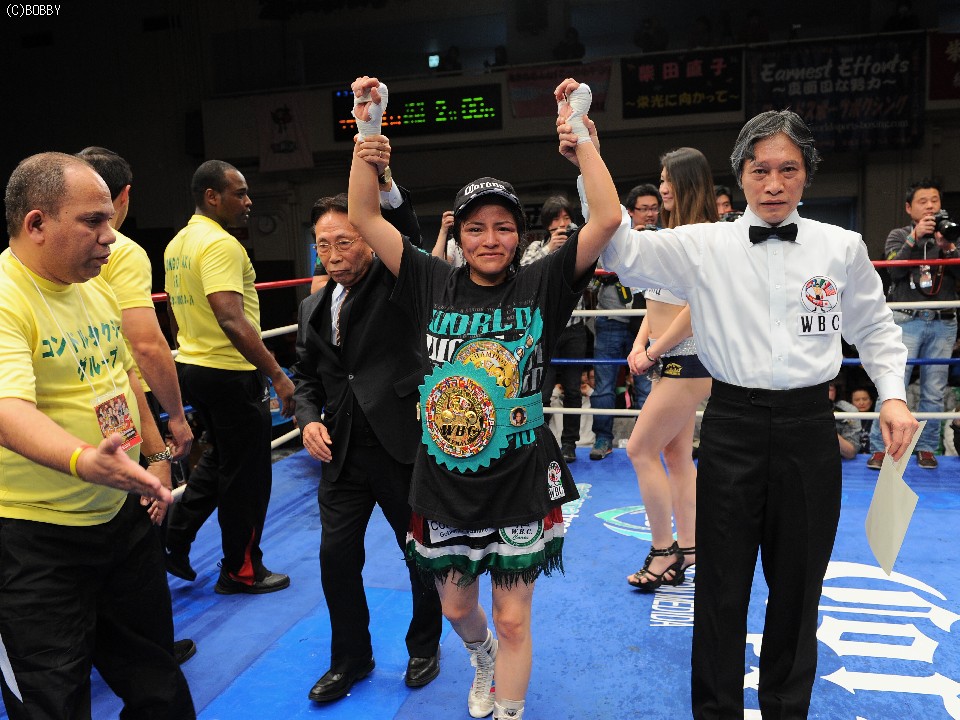 一方、勝利に沸くサモラ陣営。「満足できる内容でとても嬉しい。アウェイだが日本のジャッジを信じていた。今後も日本で防衛したい」とボクサーから女の子に戻り、キュートな笑顔を向けた。