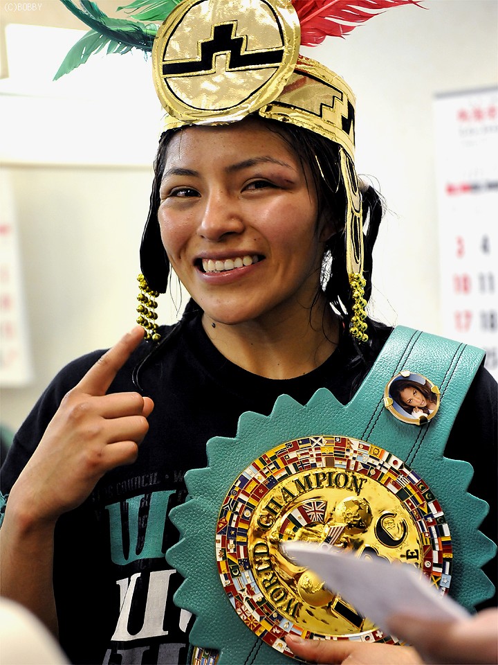 サモラはメキシコのオトミ族の出身。部族の中で女子ボクサーはサモラだけだが、叔父は日本でも戦ったことのあるプロボクサーとのこと。最後にオトミ族の言葉で「ハマディ(ありがとう)」と挨拶し、再来日を誓った。