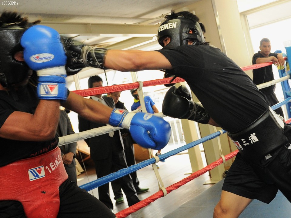 会見終了後、三浦は昨年2月に拳を交えた元比国スーパーフェザー級10位RJ・アノオスをパートナーに、3ラウンドの公開スパーリングとなった。