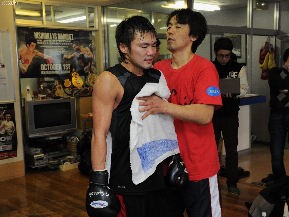 会見が終わり、五十嵐はフィリピンから招聘した東洋太平洋ライトフライ級13位ジェイソン・カノイを"仮想・八重樫"とし、3ラウンドの公開スパーリングを行った。