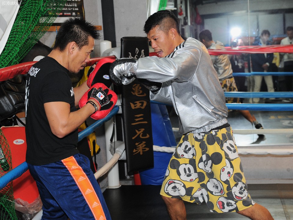 この日は、フィリピンから招集したサウスポーで東洋太平洋スーパーフライ級8位のジョルウィン・アンカハス(21)を相手に、4ラウンドのスパーを行ったあとミット打ちで汗を流した。
