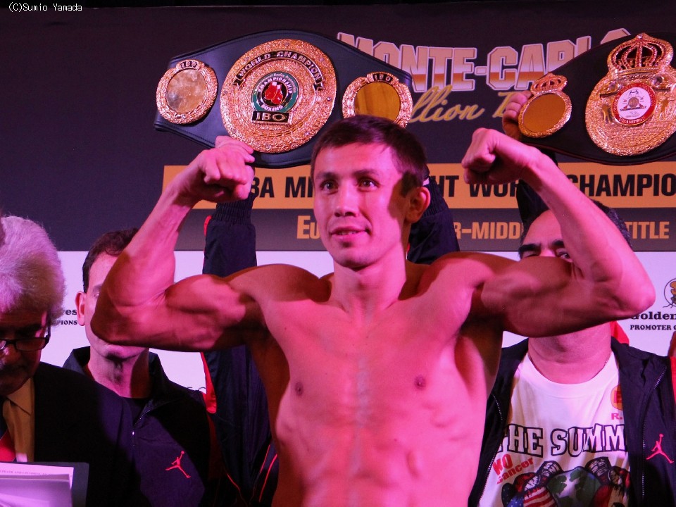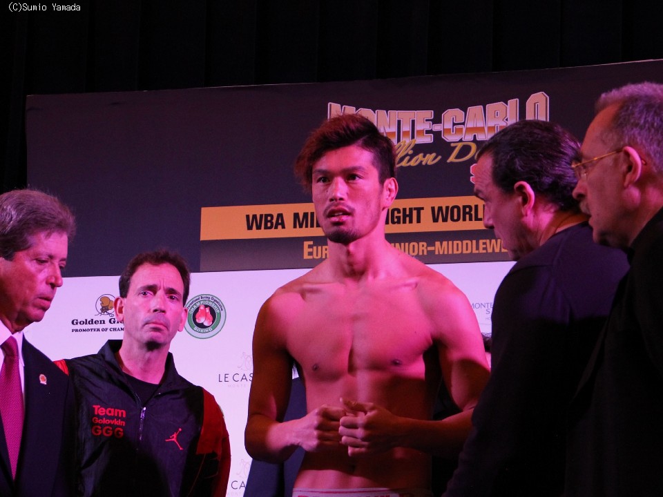 WBA世界ミドル級タイトルマッチ、王者ゲンナディ・ゴロフキン(カザフスタン/独)対石田順裕(グリーンツダ)の12回戦は30日(日本時間31日早朝)、フランス南東のモナコ公国モンテカルロで開催される。29日には当地で両者の前日計量が行われた。