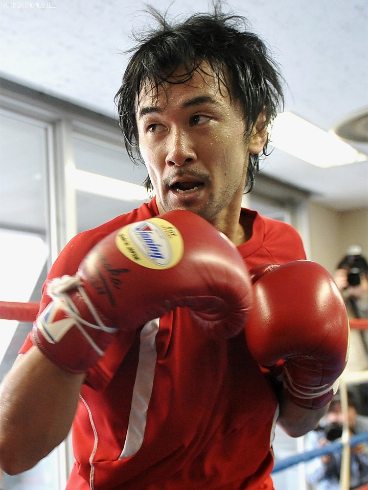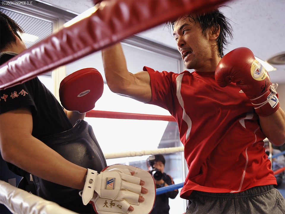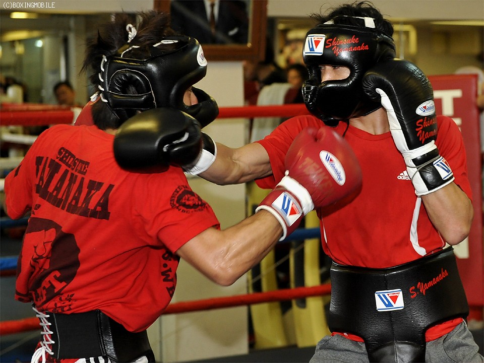 スパーリングを終えた佐々木は「山中さんの左は強いうえにタイミングが分からないんです。14オンスのグローブでガードの上から打たれても効きます。最近は左だけでなく右のジャブも固いんです」と舌を巻いた。