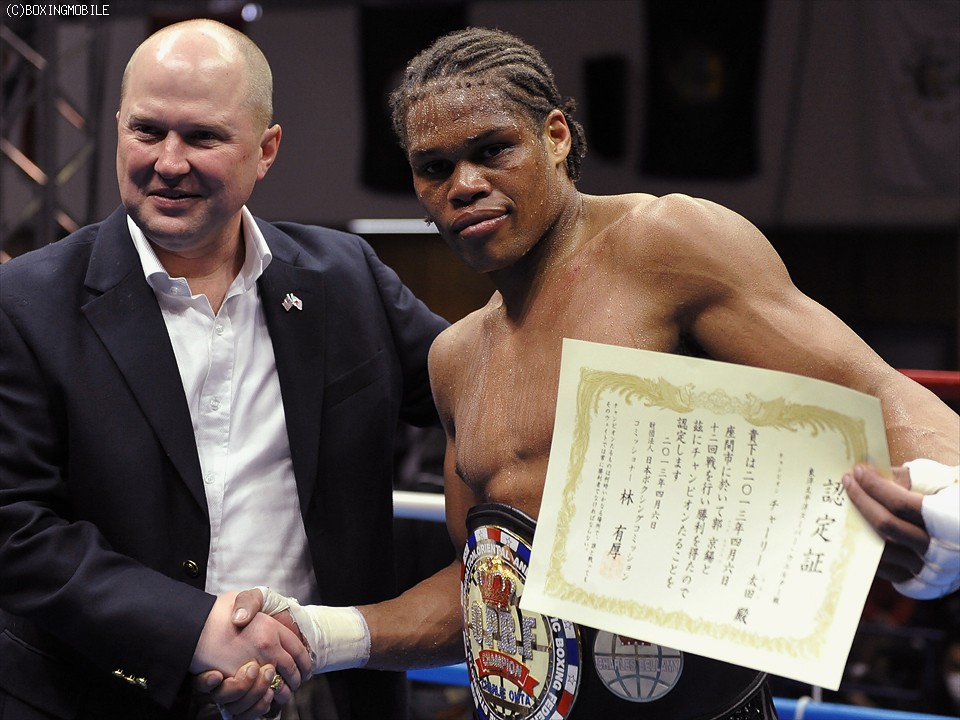 タフネスのコリアンファイターにKO勝利こそ奪えなかったが、自慢の強打を浴びせ6度目のタイトル防衛に成功した王者チャーリーが控え室で会見を開いた。「判定まで行くとは考えていなかった(笑)。挑戦者はタフガイでビックリしたよ!!12ラウンド連打し続けたが、倒すことはできなかった」と郭京錫の打たれ強さに驚きの表情を浮かべた。