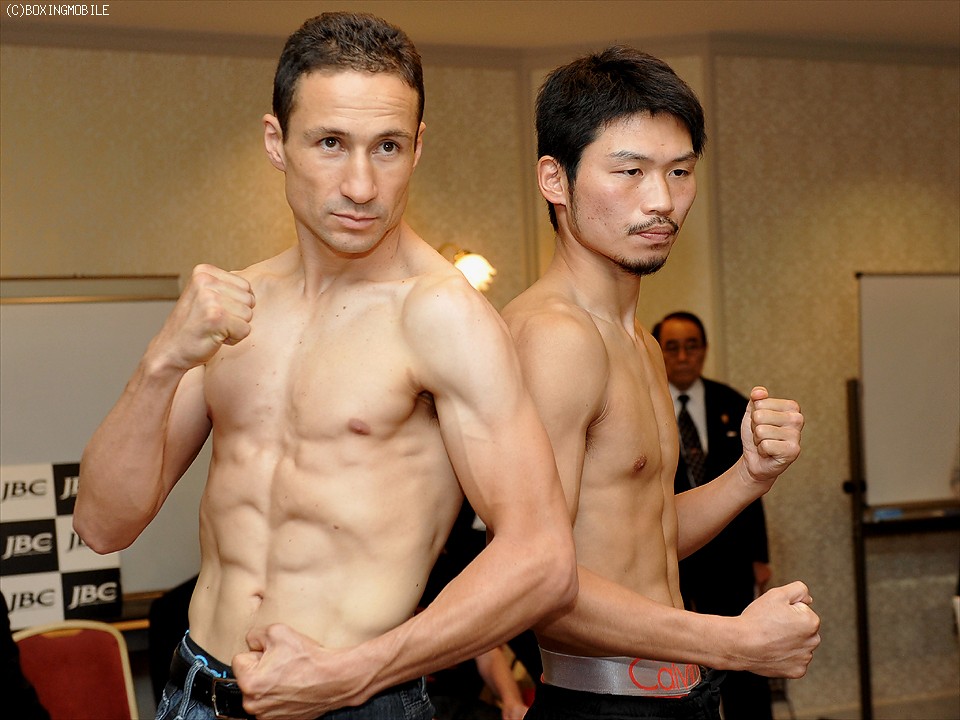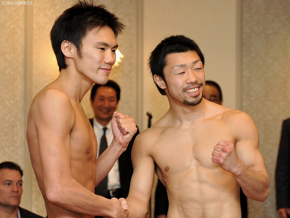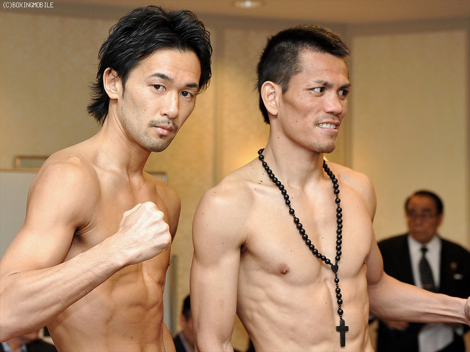 バンタム級、フライ級、スーパーフェザー級のWBCトリプル世界戦は明日8日、東京・両国国技館で開催される。その試合に先立ち7日には都内で山中慎介(帝拳)、マルコム・ツニャカオ(真正)、五十嵐俊幸(帝拳)、八重樫東(大橋)、ガマリエル・ディアス(メキシコ)、三浦隆司(帝拳)の6選手の公式計量が行われた。