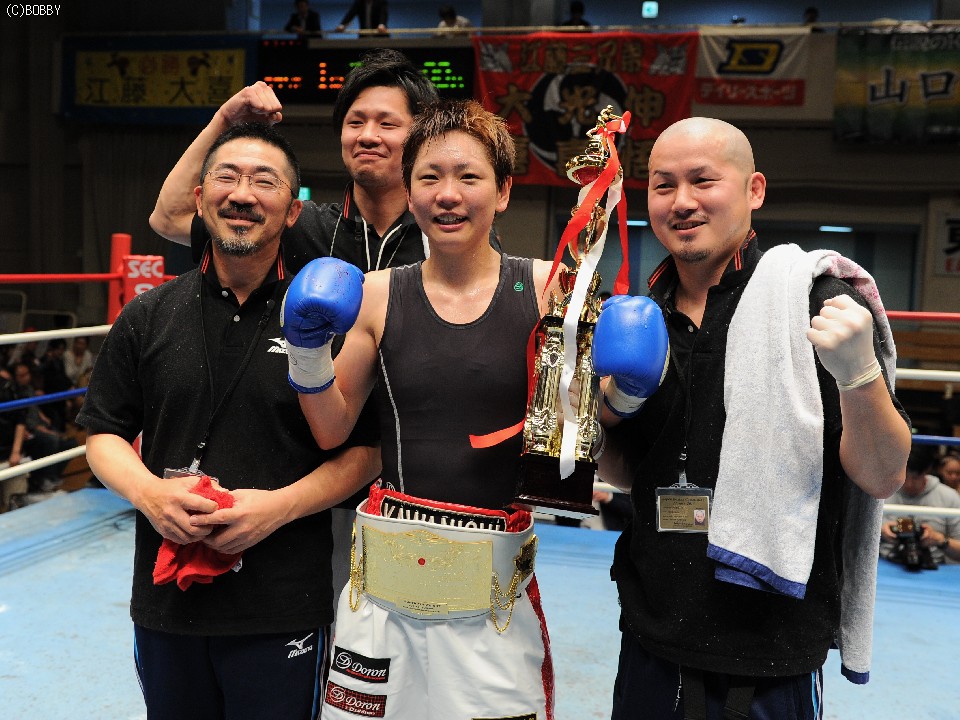 最後に新王者は「ベルトは最高!でもここが最終目標ではない。このベルトを守り、世界へ行きたい」と今後の抱負を語った。