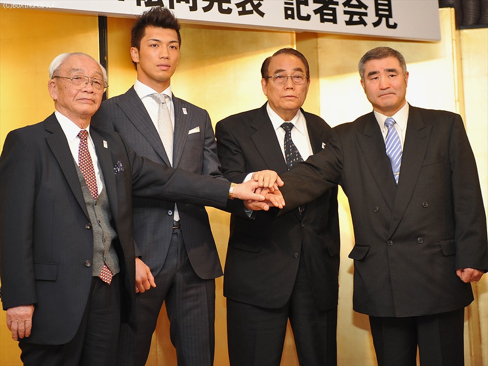 昨年8月のロンドン五輪ミドル級金メダリスト、村田諒太が12日に都内で会見を行い、プロに転向することを正式に表明した。所属は三迫ジムで、練習環境やマッチメークなどを帝拳プロモーションズが側面からサポートしていくことになる。