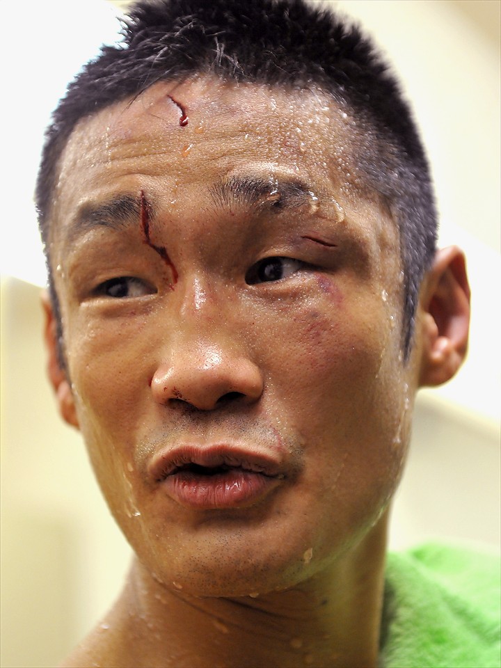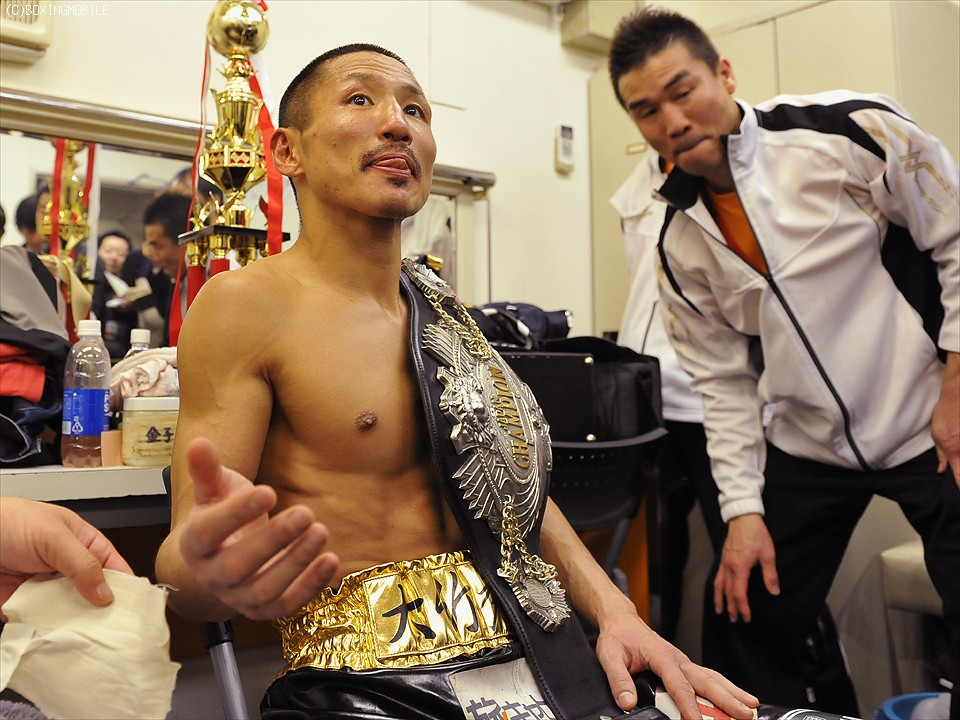 キャリア48戦目、約13年振り2度目のタイトル挑戦であったが、王者の手数にポイントを奪われ負傷判定で涙を呑んだ挑戦者・土居は「カットで弱気になったのが不味かったのかな。ポイントで王者有利はしょうがないが、最後まで戦いたかった…」と悔しさを滲ませた。序盤に右ロングフックでグラ付かせたことを尋ねられ土居は「あれは予想していた通りだった。でも途中から読まれていたし、王者がしつこく出てきた。あれが強さなんでしょうね」と最後は大竹の強さを称えた。