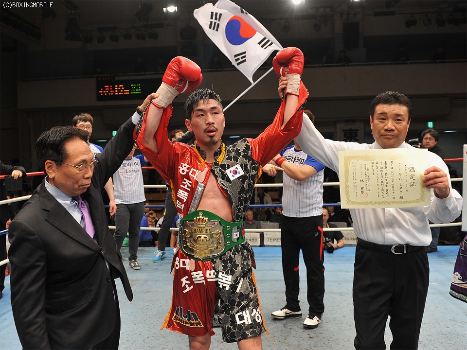 21日、後楽園ホールで日本初開催となった日韓対抗戦のメインイベントは、東洋太平洋スーパーライト級タイトルマッチが締め括った。