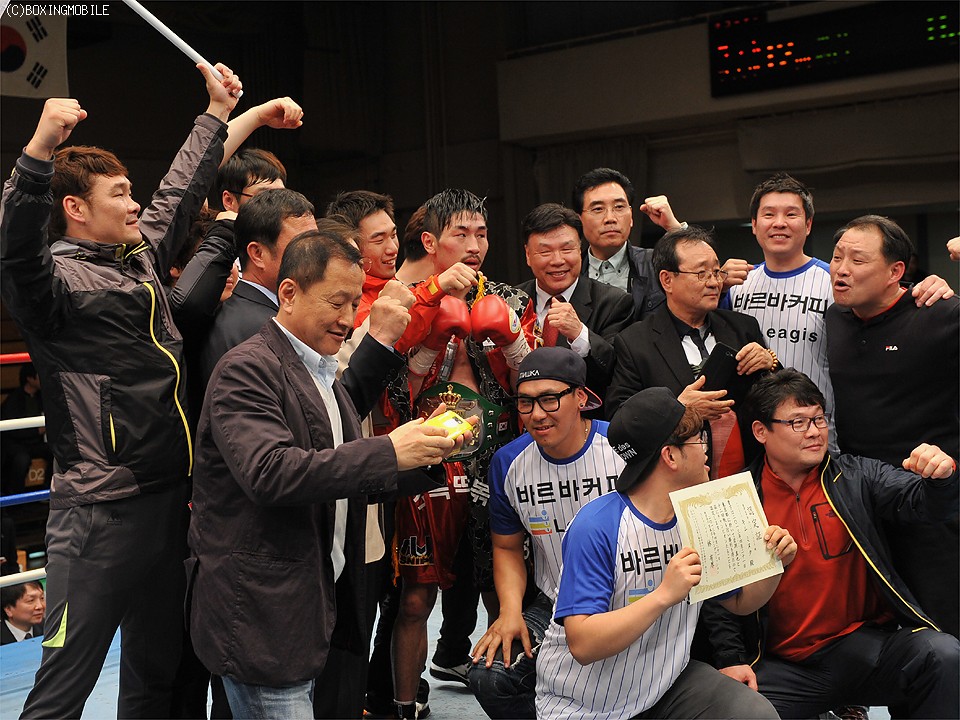 多くの報道陣を前に王者キムは「僕は相手のスタイルに合わせて戦う。だから相手がオーソドックスであろうが、サウスポーであろうが関係ない。イワブチのパンチは強かったが、そんなにダメージはないよ(笑)。またチャンスがあれば日本のリングでタイトルを賭けて戦いたい!!」と東洋王者は再来日を熱望した。
