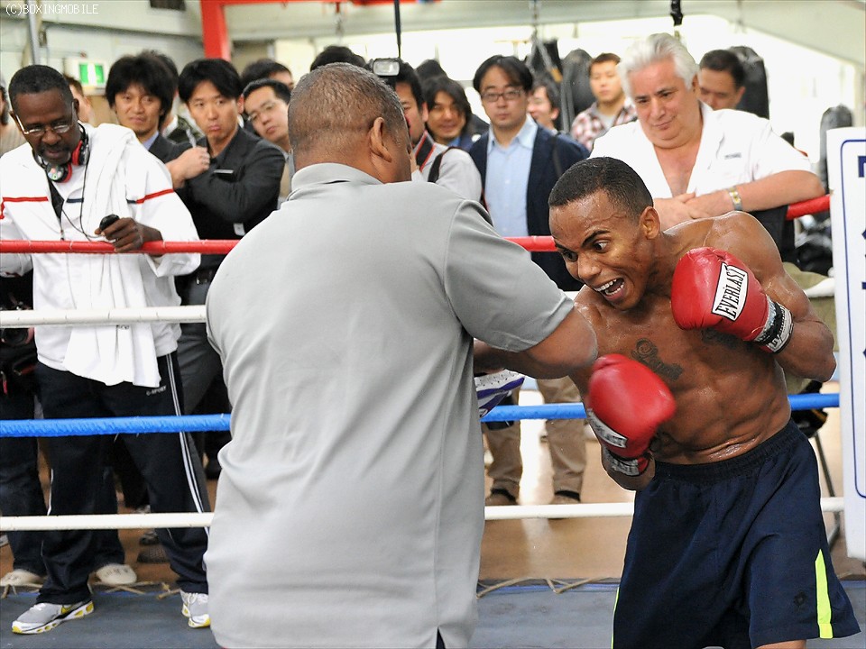。チャベス・トレーナーとのミット打ちでは、ソリスの鋭い右ストレートにミットが吹き飛ばされる場面もあり、強打振りをアピールした。3ラウンドのミット打ちで、ソリスはミドルレンジから回転の早いワンツー連打・左ボディ・左アッパー・右ストレートをを浴びせ、今すぐにリングへ上がっても問題ないといった動きを披露した。
