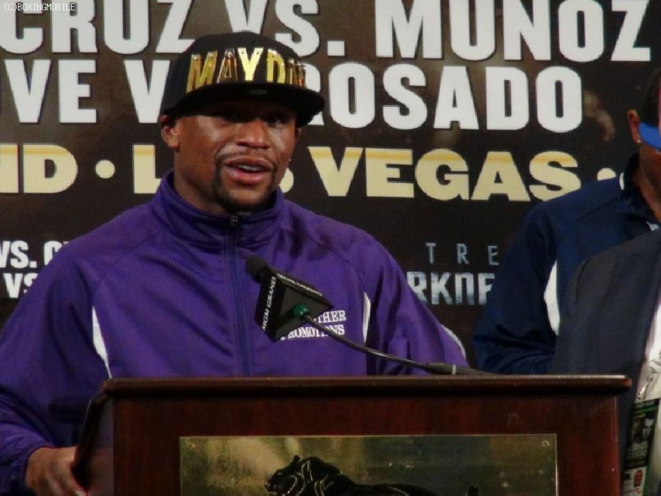 ジャッジ三者が正王者に117-111で支持し、判定3-0でメイウェザーの圧勝で終わったWBC内世界ウェルター級王座統一戦。試合後に両選手が会見に臨んだ。