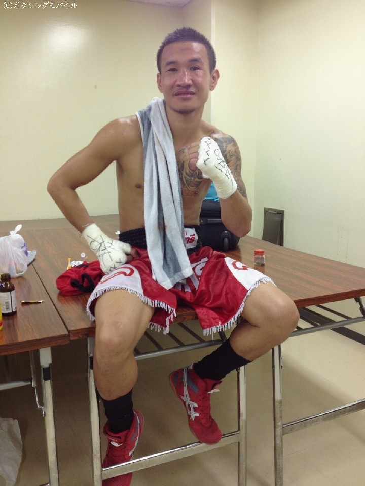 「構えて引いた時に(ボディにパンチが)入ってしまい息苦しくなった。井岡も自分と同じくらいの力を持ついい選手だった」と苦笑いを浮かべ「パンチが早くてスムーズ。1、2、3のコンビネーションがうまかった。でも、ディフェンスは普通だと思う」とチャンピオン井岡と戦った印象を語った。「自分にはパワーがあったので、2、3年前に出会えばよかった」と敗戦を悔しがった。