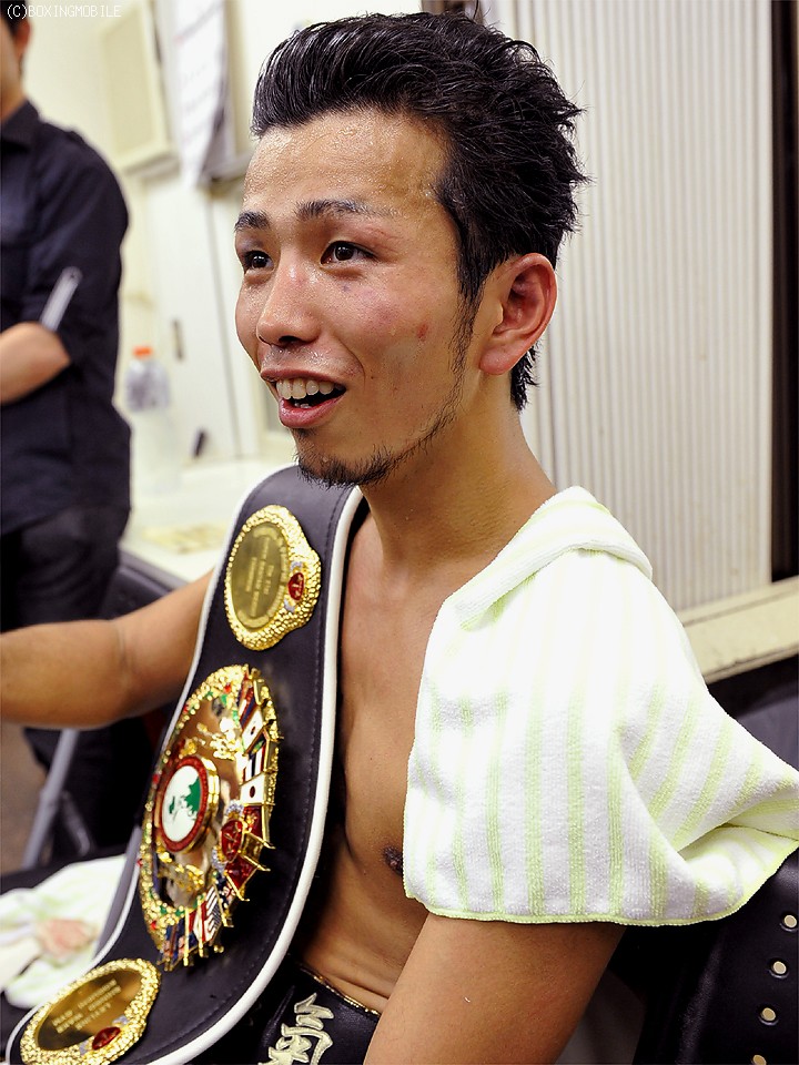 タイトル初挑戦も王者・和氣の左ストレートに貫かれ、完敗を喫した挑戦者・菊地永太は「全然だめでした。下から崩していこうと思ったが、練習してきたことが出せなかった。1ラウンドのダウンもタイミングよくもらってしまった。また頑張りたい…」と悔しさを滲ませた。