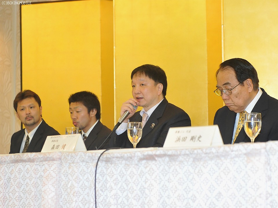 八重樫は4月8日に五十嵐俊幸(帝拳)から奪った王座の初防衛戦となる。こちらは強打のメキシカンが相手となる。挑戦者のブランケットは38戦32勝(23KO)5敗1分で、直近試合となる昨年12月のウィルベルト・ウイカブ(メキシコ)とのランカー対決では判定負けを喫しているが、侮れない危険な相手といえる。昨年6月の初来日試合では、前評判の高かったウォーズ・カツマタ(勝又)を左フック一発で失神させた強打の持ち主なのだ。「独特のリズムがあるので、それを研究する必要があると思う」と八重樫は警戒心を抱いている。「打ち合いは避け、本来の持ち味であるスピードを生かした出入りのあるボクシングをしたい」とも。大橋秀行会長も警戒の色を強めている。「カツマタ戦は一発の失神KOですからね。(ブランケットは)最近では珍しい一発のある選手」と評価。こうしたかな「八重樫がいつものように打ち合ったら、そのときは負ける」と、4月に続く愛弟子を前にしての“失言”に会場は笑いに包まれる一幕もあった。ここを勝ち抜けばエドガル・ソーサ(メキシコ)との指名試合が待っているが、八重樫は「目の前の一戦をクリアすること。先のことは勝ってから」と気を引き締めていた。