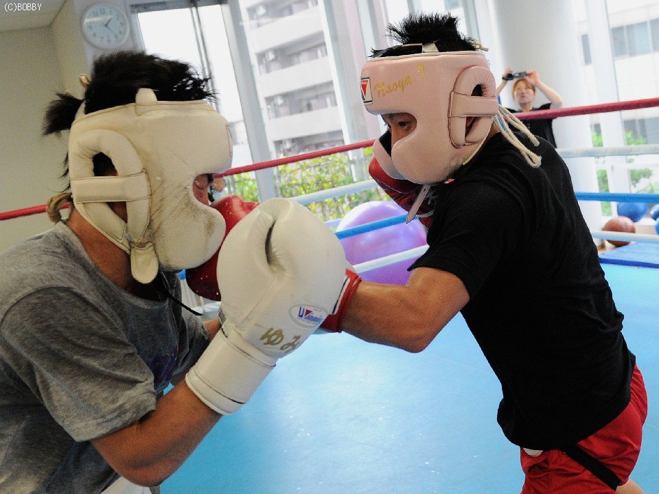 久しぶりのスパーリングとなった井上は「夏バテじゃないが、途中で足が動かなかった(笑)。コンディション的にも、モチベーション的にも上がってきている。日本タイトル奪取に向け、今日から本格始動です!!」と気合いを漲らせ、タイトル奪取に意欲を見せた。