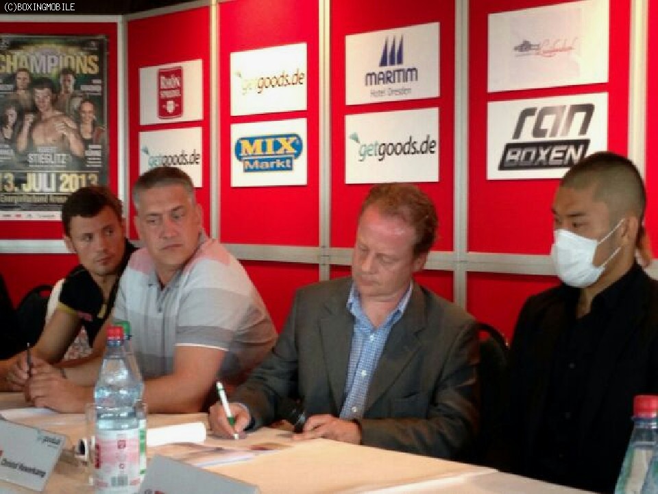 最後に記者が「日本からカミカゼがドイツにやって来た」と新聞で報道されている話すとアジアの拳王は「僕は世界チャンピオンになるためにドレスデンにきた。13日は神風を吹かせます」と自らに気合いを入れた。