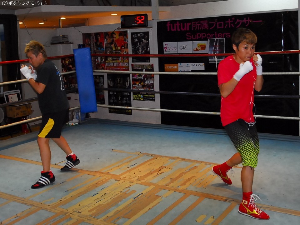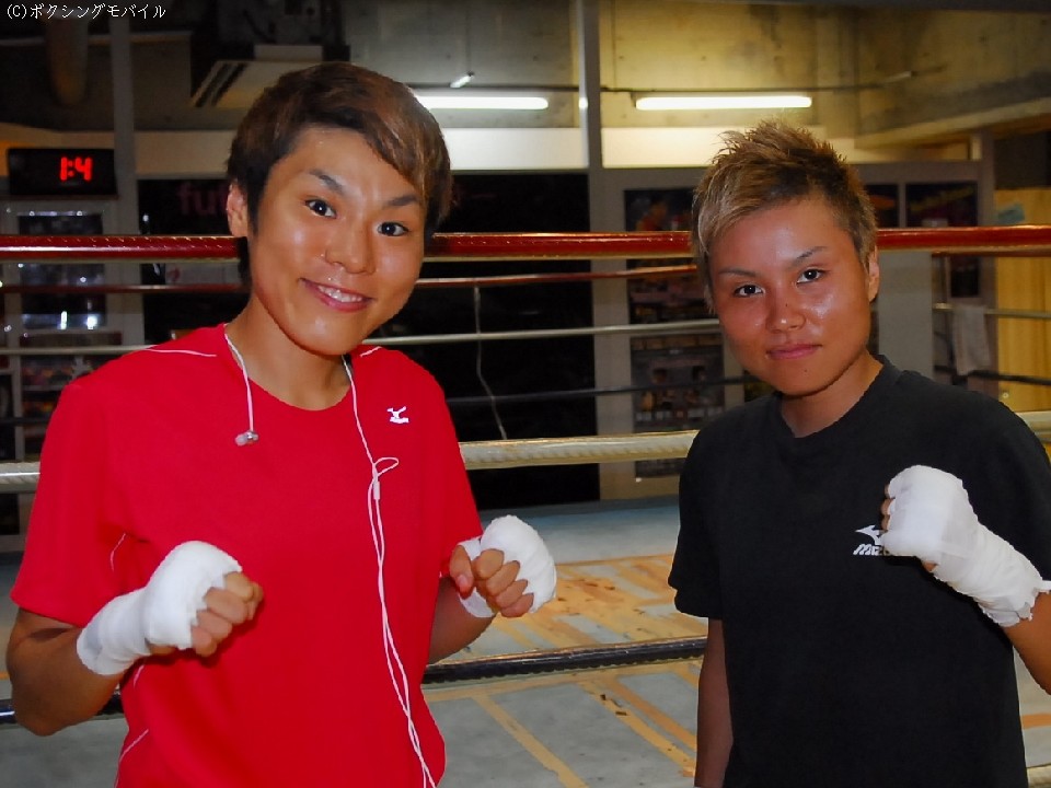 この日はジムメートの元WBA世界Lミニマム級王者・安藤麻里(フュチュール)とともにシャドー3Rの後にスパーリングを4Rこなすと、松本トレーナーを相手に4Rのミット打ちを披露して練習を終えた。