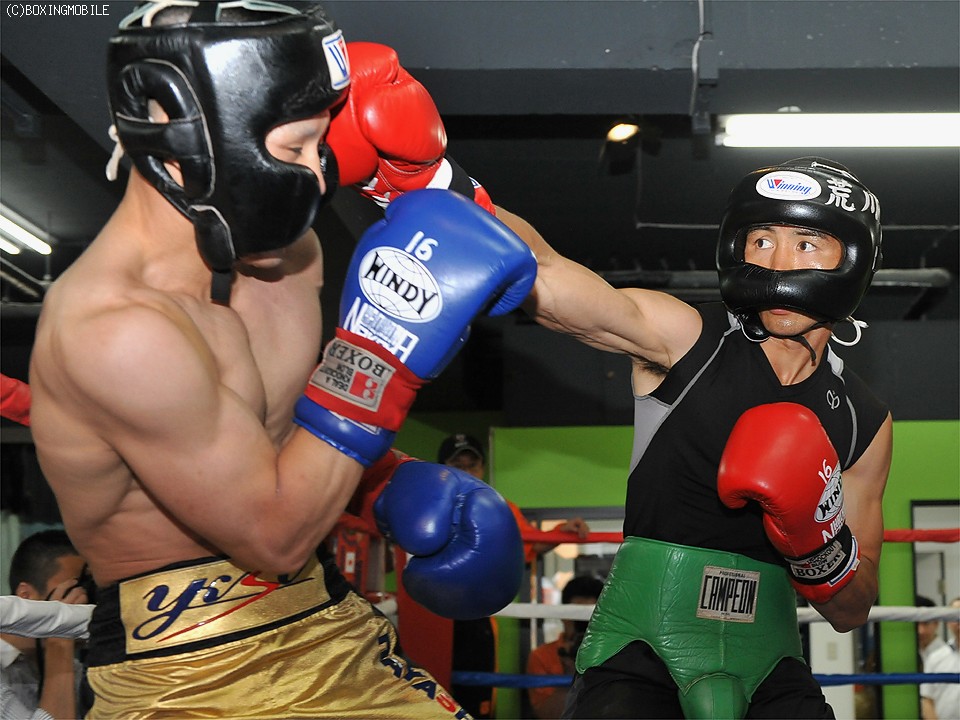 スパーリングは今回の試合用に約100ラウンド、それ以前のものも含めれば合計200ラウンド超に及ぶという。大勢の報道陣を前にした公開スパーでは同門のスーパーライト級、A級ライセンス所持者の林和希を相手に4ラウンド、軽めながら一つひとつの動作を確認するように動いた。上体を振りながら立ち位置を変え、サウスポー・スタンスから左ストレートを上下に打ち分ける。さらに懐に飛び込んで左ボディアッパーを突き上げるなど、フィゲロア対策の一端を披露した。自身も24日に日本ランカーとの試合が決まっている林は「荒川さんには独特の間合いがあるんです。休みのないフェイントもあるのでタイミングがとりにくいんです。100パーセント、勝つと思います」とジムメートの戴冠に太鼓判を押した。