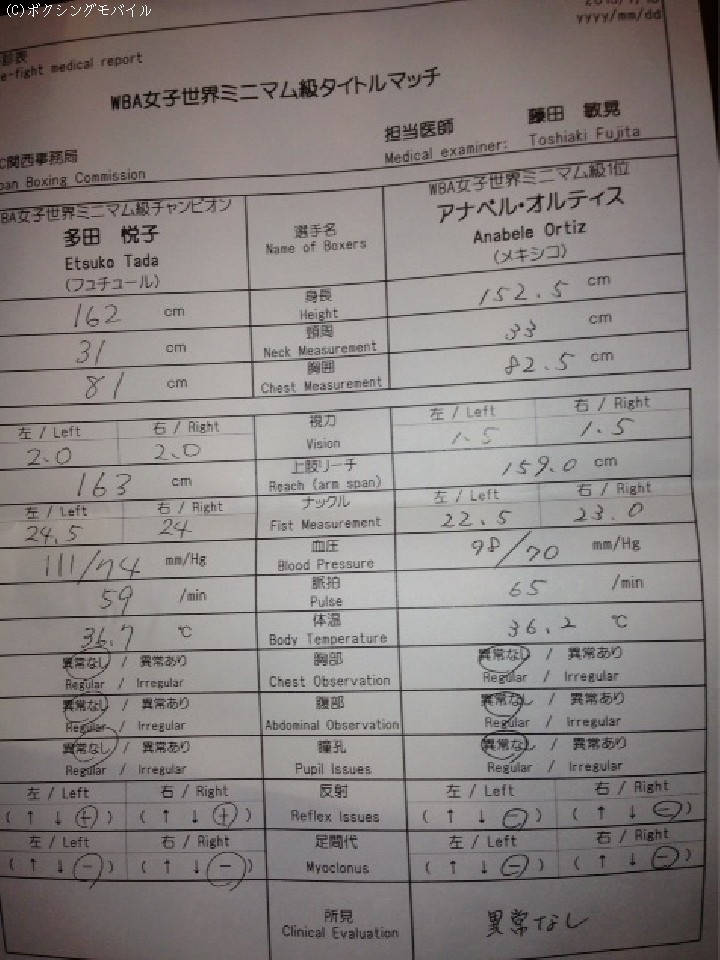 予備検診の後に会見を開いた多田は「とりあえず勝つことが先決。亀田選手のアンダーなので相乗効果があれば良い」とダブル世界戦に意欲を見せると「アナベル選手の左フックに注意して、距離感を持って戦いたい」と挑戦者対策を口にした。