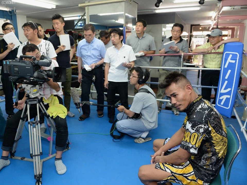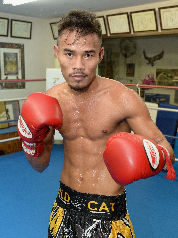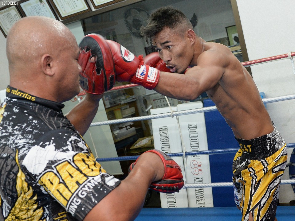 試合の4日前ということもあり、練習は軽めだった。シャドーボクシングに始まり、スリッパ履きのトレーナー相手に5ラウンドのミット打ち、パンチングボール、ロープ跳びなど約1時間で切り上げた。発達した筋肉質の上体が目を引いたが、体重はリミット(118ポンド≒53.5キロ)を3ポンド(約1360グラム)オーバーしているだけという。亀田の試合はポンサクレック・ウォンジョンカム(タイ)戦など3試合の映像を見たといい、「たぶんボディが弱いと思う」と指摘した。作戦については「ジャブをはじめ手数を出してポイントを稼ぐ」と話したが、その一方で「6ラウンドまでにはKOする。得意の右フックが当たればKOできる」と自信もみせた。