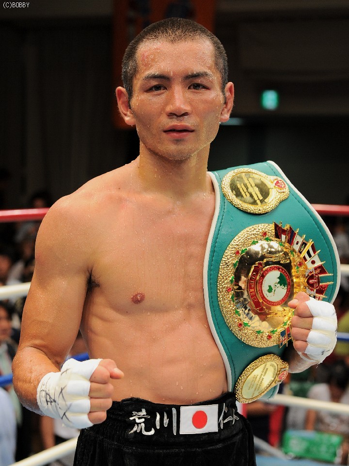 08年9月、当時の東洋太平洋ライト級王者で世界ランクの常連だったランディ・スイコ(比)に挑戦。引き分けに終わったものの大いに株を上げたものだった。その後、3連勝を収めた荒川は近藤明広(日東)を判定で下して日本ライト級王座を獲得した。10年4月のことである。この王座は3度の防衛後に返上し、11年10月には東洋太平洋王座の決定戦に臨む。圧勝が予想された試合だが、荒川は2回にダウンを喫するなど序盤で大きくつまづき、判定で辛勝という結果に終わった。日本王座のV2戦でも序盤にダウンを喫しており、「荒川はスロースターター」との評は、こうしたデータから来ているといえる。