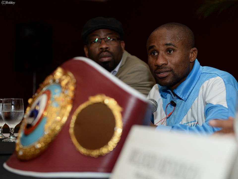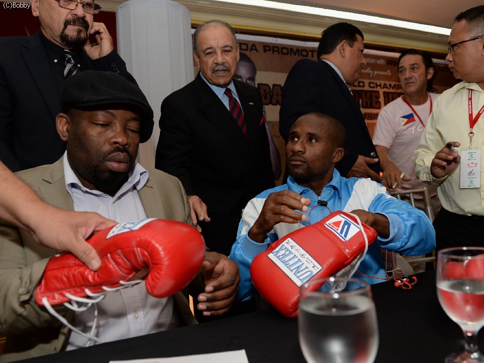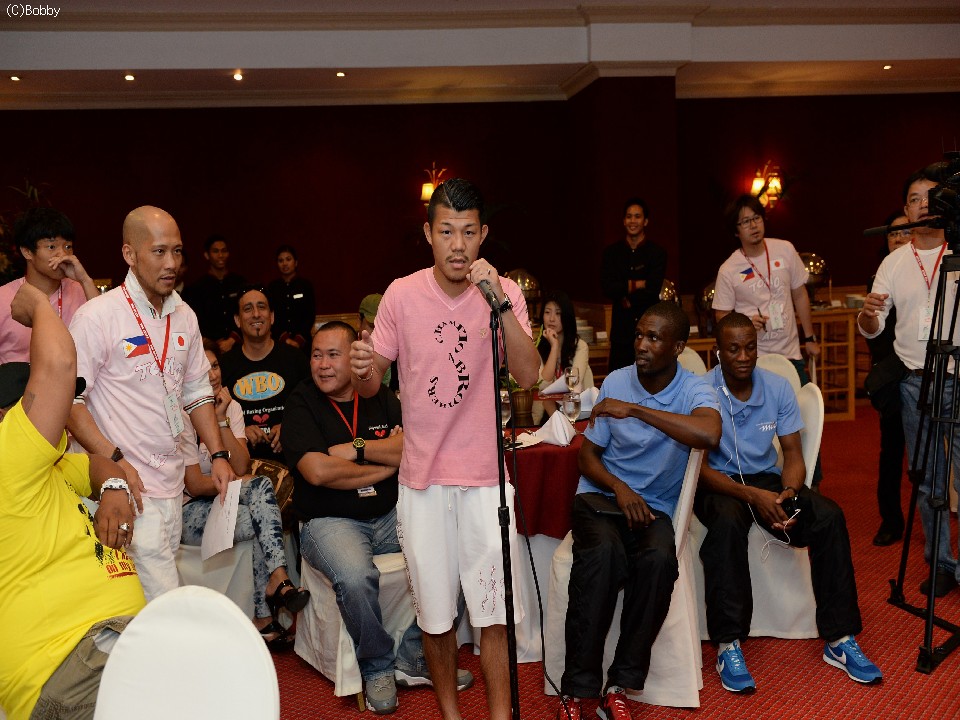 8月1日に行われるWBO世界バンタム級タイトル戦の調印式が30日、試合会場と同じフィリピンのセブ島にあるウォータフロントホテルセブシティ&カジノ内のCASPIAN ROOMで行われた。