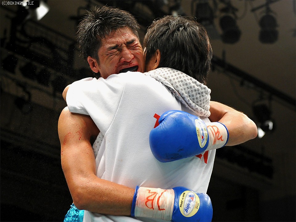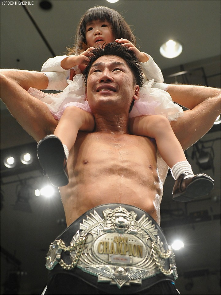 一方、4人目の国内3階級制覇を成し遂げた中川は、右の拳を気にしながら控室に戻ってきた。「薬指の付け根が折れているらしいです。途中で違和感はあったけれど、最後にフォローしたあとで急に痛み出したんです」と、右手を冷やしながらも表情は緩んだままだった。「左ジャブを突いてガードを上げて戦えればよかったけれど、1Rから効いているのが分かっていたのでチャンスは逃したくないじゃないですか。引きたくはなかったので行きました」と激闘を振り返った。五代登、前田宏行、湯場忠志(4階級制覇)に続く3階級制覇とあって、35歳の新王者は結果に満足そうだった。「素直に嬉しいですね。これで少しは名前が残りますからね」