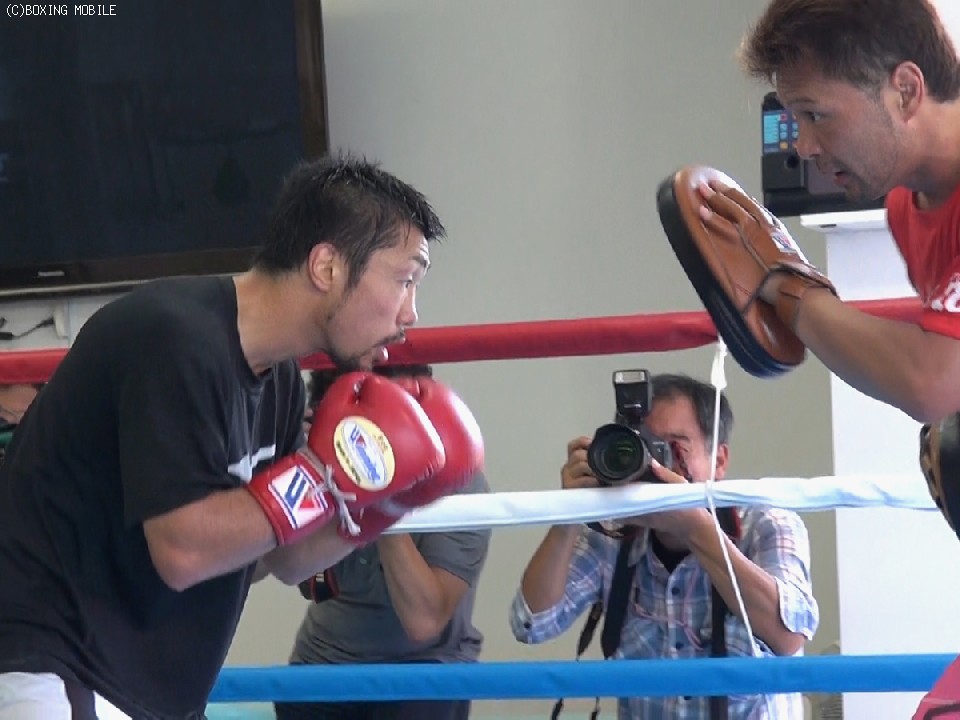 練習を見る大橋会長は「仕上がりはまだ100%じゃないが、状態は完璧」と太鼓判を押すと「井岡戦、五十嵐戦に続いて三試合続けて怪我がなく順調というのは、八重樫のボクサーキャリアの中でも凄いことだと思う。これも土居トレ効果なのかなという感じですかね」と笑顔をみせた。