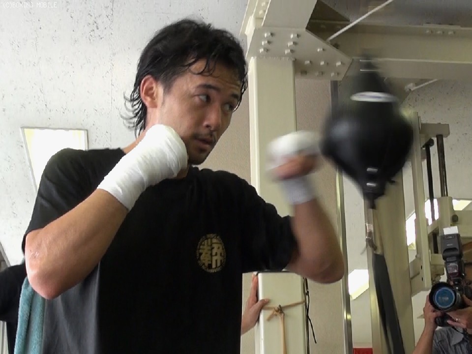 スパーリングはフィリピンのパートナー2人と予定どおり合計120ラウンドを消化しており、この日はシャドーボクシング、ミット打ち、サンドバッグ打ちなど軽めのメニューだった。サンドバッグ打ちでは立ち位置を確認しながら感触を確かめるように力強いパンチを打ち込んでいた。