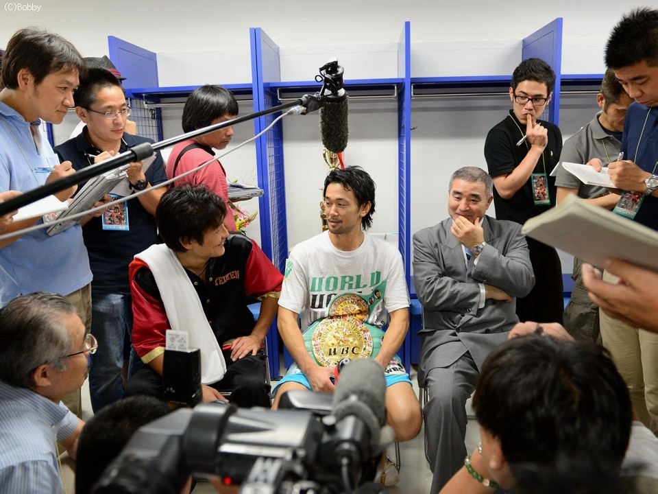 一方、3試合連続KOでV4に成功した山中は、テレビの放送席で試合を振り返ったあとKO劇から約1時間後に会見に臨んだ。本人が「ノーダメージです」というように、顔は試合前とまったく変わりなかった。「いまからという感じでしたね。もう少しやりたかったというのが本音です」と、笑顔をみせた。フィニッシュブローの手応えについては「少しだけでした。その前の左ストレートの方が効いていたんじゃないですか。距離が思ったよりも近く、相手のパンチも分かったので落ち着いて戦えました」と振り返った。