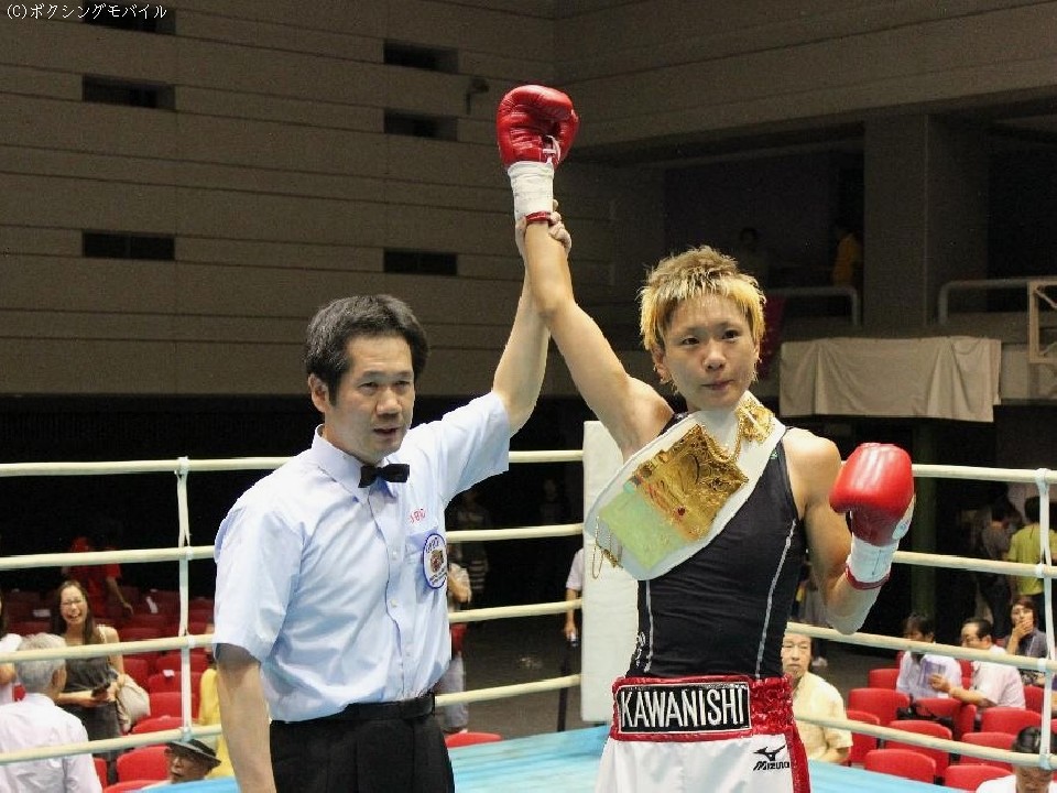 バンタム級とスーパーフライ級を主戦場に戦っていく決意をした様子の川西は「まだまだ上を目指して努力したい」と世界に目を向ける一方で「課題はいっぱいある。強い相手と戦っていきたい」と気合いを入れた。