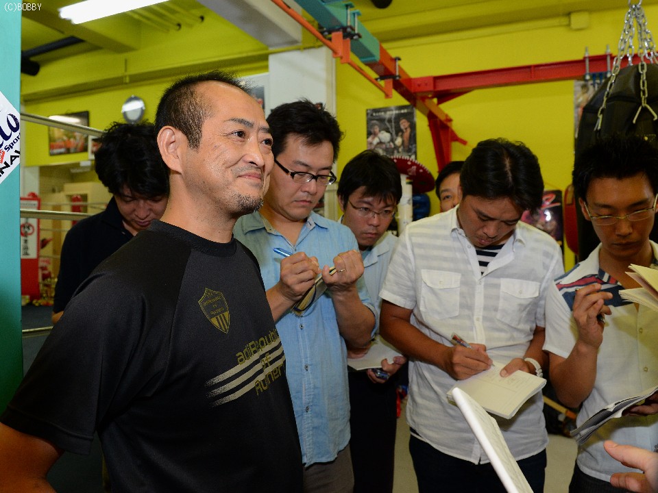 公開練習前に集まった報道陣に会見を開いた井岡は「体調はいいですよ」とリラックスした様子で答え「夏場の調整だったので、脱水症状を起こさないように、体力が落ちないように、食べて飲みながら、気をつけて調整をやりました」と猛暑の調整にも自信をみせた。