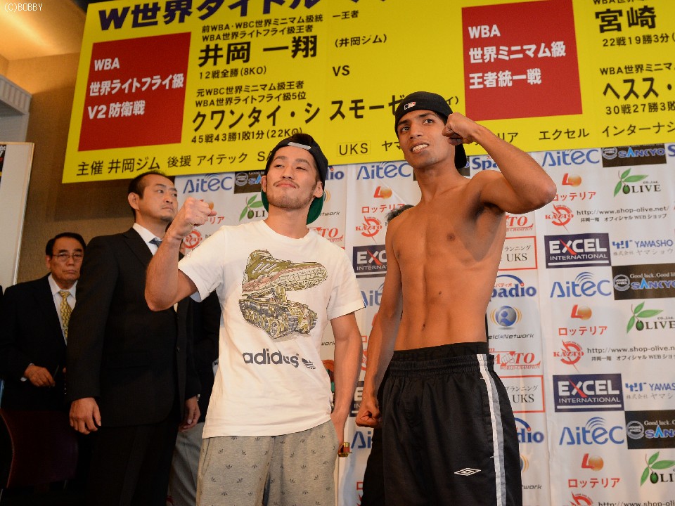 井岡は「宮崎は僕と違って図太い性格やし、やる時やる男やから大丈夫と思ってました。僕より減量がキツイのはわかっていますし、励みになりましたね」というと宮崎は「一翔は一段一段着実にいくというよりドンドン減量が進んでいる感じでしたね。僕は夏場やったしホンマにキツかったです。」と苦労を口にした。