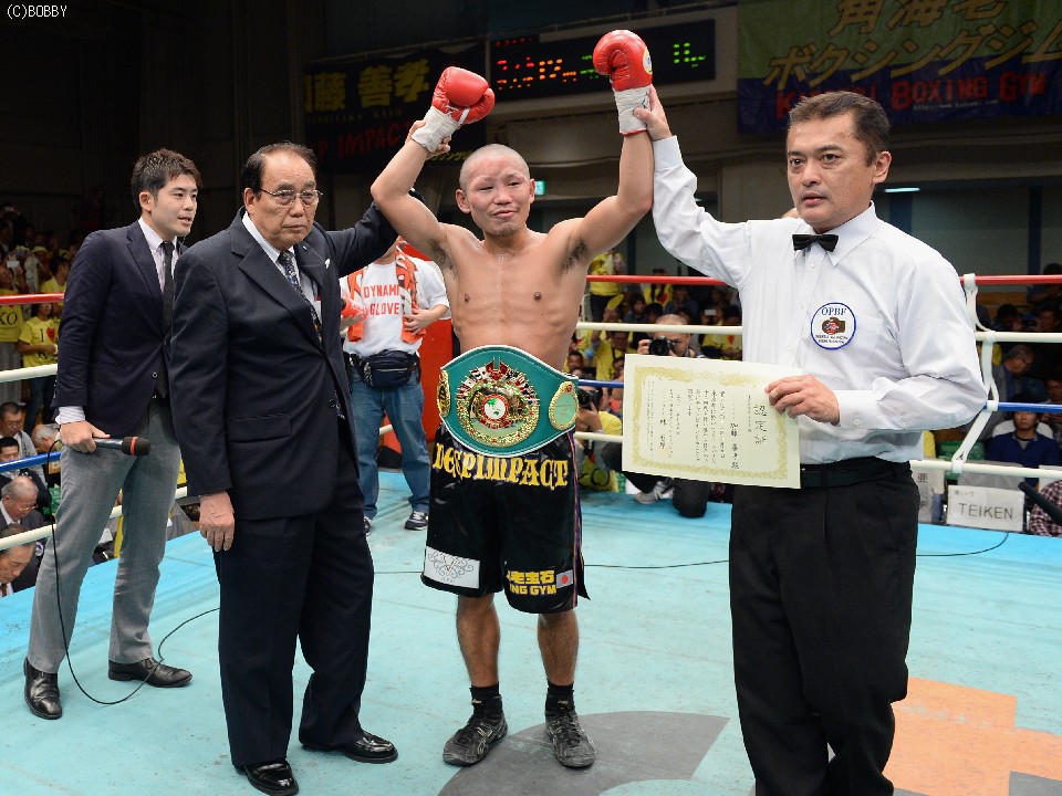一方の加藤は額に赤い擦過傷をつくりながらもホッとした様子だった。「すごいパンチでした。最後まで威力が衰えないので、警戒して出られませんでした」と、まずはラバオのパンチ力を称えた。WBO4位を下したことで自身のランクが上昇する可能性が高いが、「(世界への)足がかりになればいいんですが…でも、世界となると今日の相手ぐらいは倒さないとダメでしょうね」と表情を引き締めた。傍らの鈴木真吾会長が「もう日本タイトルは返上しようか。あと1試合やって世界に行こう」と声をかけると「できればオマール・フィゲロア(米=WBC暫定王者)に挑戦したい。世界挑戦の声がかかれば海外にも行きますよ」と、具体的な王者名を出して意気込みを語った。31戦26勝(7KO)4敗1分。
