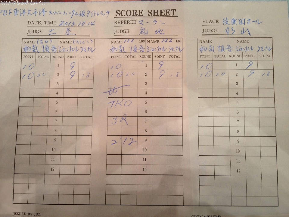 完璧とも言える試合内容だったが、欲を言えば一度は倒してほしかった。しかし、2Rに右フックによる左頬の負傷が追加されたラモナルが持たず、2度のドクターチェック後の3R2分12秒、レフェリーが続行不能と判断し試合を止めた。和氣は刃物のごとき拳で、3戦続けて文字通り相手を切り裂いたことになる。