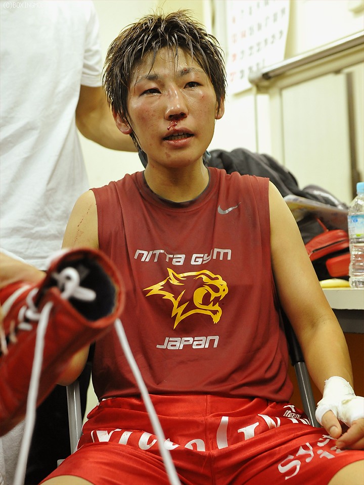 一方、右目上脇に3センチ近い裂傷を負ったうえ眉間も腫らした三好は心身のダメージが深そうだったが、取材に応じる気丈さをみせた。「初回は来ると思っていたけれど、結果として相手の土俵で戦うことになってしまいました。(東郷の)パンチが強いことは分かっていたけれど、こちらのバランスが崩れ過ぎました。そのまま修正がききませんでした」と、敗因を自己分析した。6月のメキシコでの世界挑戦(10回判定負け)に続き連敗となった。16戦8勝(3KO)7敗1分。